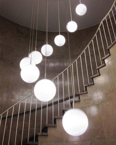 The Talia features a glass globe design, which gives it an elegant, timeless look while housing high-efficiency LED arrays for optimal illumination. It offers flexibility with the option to be suspended or surface-mounted, allowing for various installation preferences.