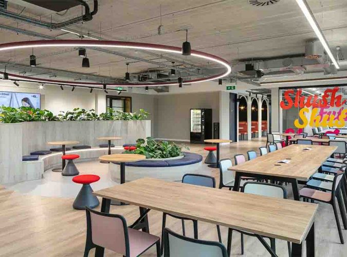 As part of their ongoing evolution, creating a space where students can thrive was central to the design process. Integral to this vision was the use of advanced LED luminaires from LDL, including a striking 3m diameter Polo pendant as a centerpiece. These lighting solutions played a crucial role in fostering an inspiring environment that promotes both creative expression and intellectual development, helping to elevate the overall atmosphere of the space and support the artistic journeys of the students.