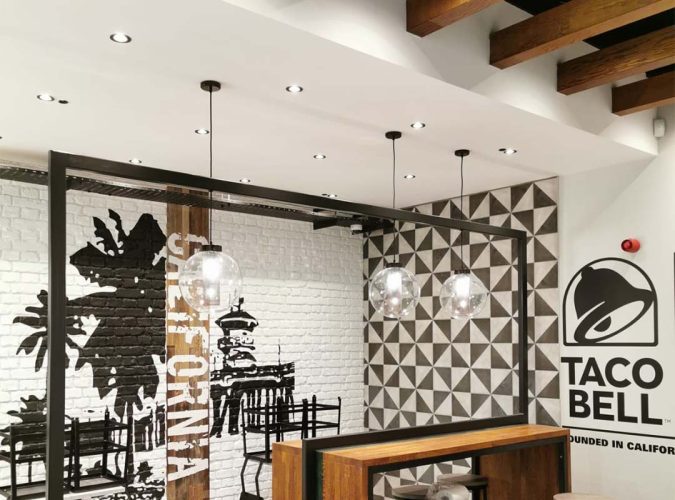 Creating an environment that offers both style and visual interest, with architecturally inspired interiors — that was the brief for Taco Bell’s latest spaces. LDL Lighting was proud to contribute by supplying innovative luminaires that seamlessly complement the bold and distinctive design concept.
